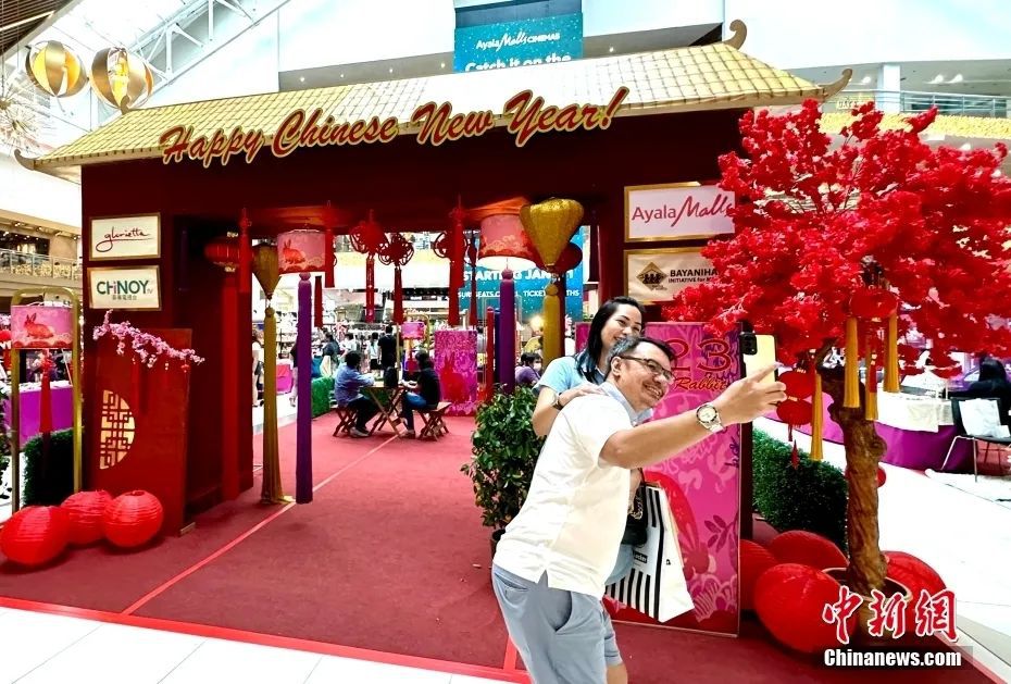資料圖:當?shù)貢r間1月21日,農(nóng)歷除夕,菲律賓大馬尼拉地區(qū)馬卡蒂市一商場內(nèi),市民在“新春集市”前拍照。近日,該商場搭建了“新春集市”“十二生肖展示區(qū)”等,吸引不少市民前來參觀、購物。中新社記者 張興龍 攝