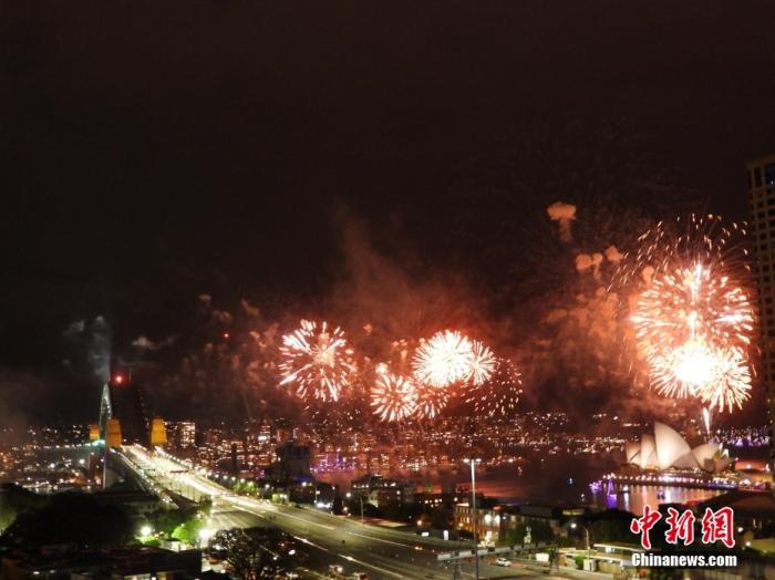 資料圖:當(dāng)?shù)貢r(shí)間2023年12月31日晚上9點(diǎn)和午夜時(shí)分,澳大利亞悉尼海港大橋和歌劇院燈火通明,音樂(lè)響起,迎來(lái)了2024年的到來(lái)。
