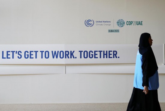 2023年12月12日,在阿聯(lián)酋迪拜,一名參會(huì)人員走在聯(lián)合國(guó)氣候變化迪拜大會(huì)會(huì)場(chǎng)內(nèi)。新華社記者王東震攝
