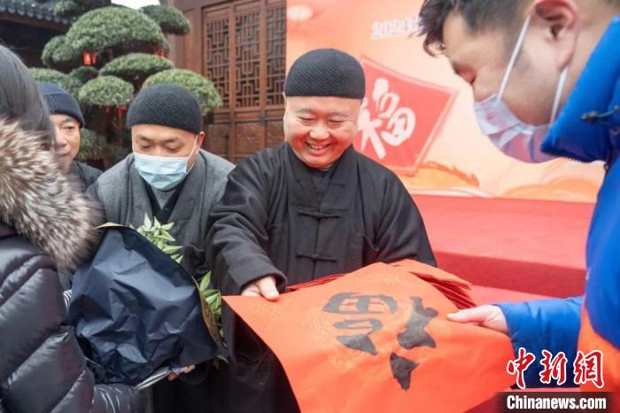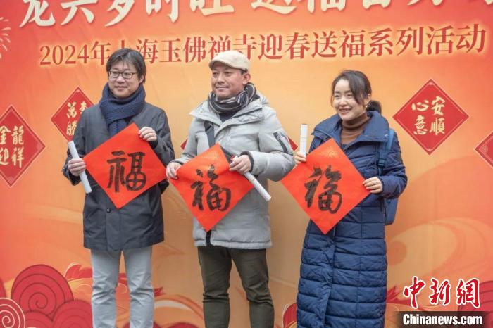 新春送福活動(dòng)現(xiàn)場?!∩虾S穹鸲U寺供圖