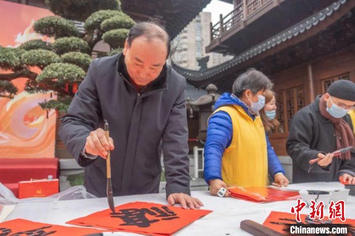 中新網(wǎng)上海1月21日電(記者 范宇斌)21日,“龍興歲時(shí)旺 送福百萬家”——2024年玉佛禪寺新春送?;顒?dòng)在上海玉佛禪寺啟動(dòng)。上海覺群書畫院理事長、玉佛禪寺方丈覺醒法師表示,迎新貼“福”字是傳統(tǒng)的年俗文化,也是中華兒女對(duì)于美好生活、光明未來的共同期待。
