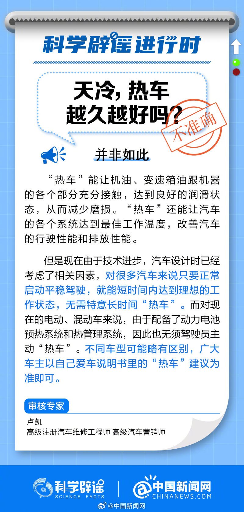 中新網(wǎng)1月23日電 “熱車”能讓機(jī)油、變速箱油跟機(jī)器的各個(gè)部分充分接觸,達(dá)到良好的潤(rùn)滑狀態(tài),從而減少磨損?!盁彳嚒边€能讓汽車的各個(gè)系統(tǒng)達(dá)到最佳工作溫度,改善汽車的行駛性能和排放性能。但是現(xiàn)在由于技術(shù)進(jìn)步,汽車設(shè)計(jì)時(shí)已經(jīng)考慮了相關(guān)因素,對(duì)很多汽車來(lái)說(shuō)只要正常啟動(dòng)平穩(wěn)駕駛,就能短時(shí)間內(nèi)達(dá)到理想的工作狀態(tài),無(wú)需特意長(zhǎng)時(shí)間熱車。(來(lái)源:@科學(xué)辟謠 @中國(guó)新聞網(wǎng))