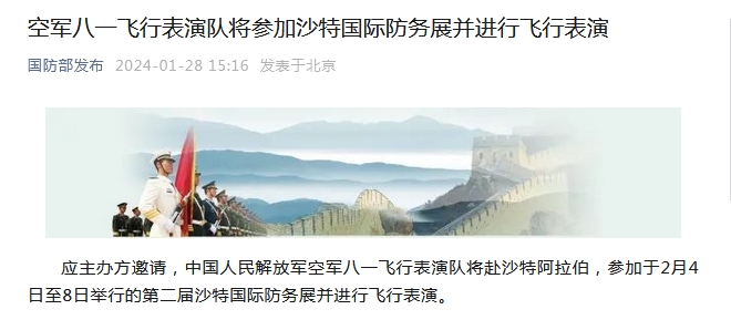 空軍八一飛行表演隊(duì)將參加沙特國(guó)際防務(wù)展并進(jìn)行飛行表演