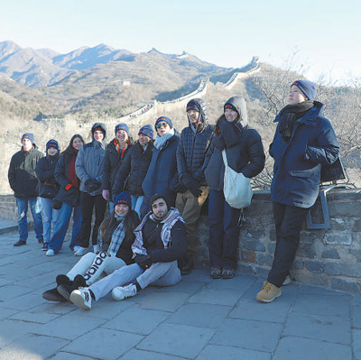 1月7日,弗吉尼亞大學(xué)代表團(tuán)成員在八達(dá)嶺長(zhǎng)城合影留念。