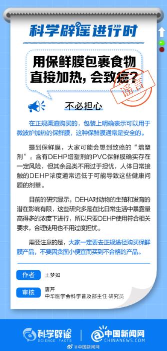 中新網(wǎng)1月31日電 在正規(guī)渠道購買的,包裝上明確表示可以用于微波爐加熱的保鮮膜,通常是安全的。提到保鮮膜,大家可能會想到致癌的“增塑劑”。含有DEHP增塑劑的PVC保鮮膜確實存在一定風(fēng)險,但其余品類不用過于擔憂。(來源:@科學(xué)辟謠 中國新聞網(wǎng)微博)
