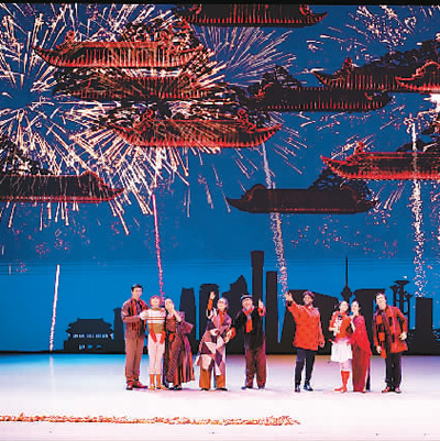 舞臺上,紅彤彤的燈籠、喜慶的春聯(lián)、熱鬧的廟會奏響了中國農歷新年的序曲;“團團”和“圓圓”家的年夜飯彰顯了中國禮儀之邦的待客之道、尊老愛幼的傳統(tǒng)美德,一張全家福更傳達了中國人對親情的重視和對團圓的向往;“胡桃夾子”大戰(zhàn)“年”獸,則充滿童趣地演繹了“過年”的傳說;而當寓意吉祥的仙鶴在蒼勁的松樹下迎著朝陽翩翩起舞,西方芭蕾藝術在中國文化意象中煥發(fā)出了美妙的東方神韻;扇子舞、絲綢舞、風箏舞、陀螺舞……一個個頗具中國元素的慶典場面讓阿聯(lián)酋觀眾游歷在瑰麗多姿的中國傳統(tǒng)文化中。
