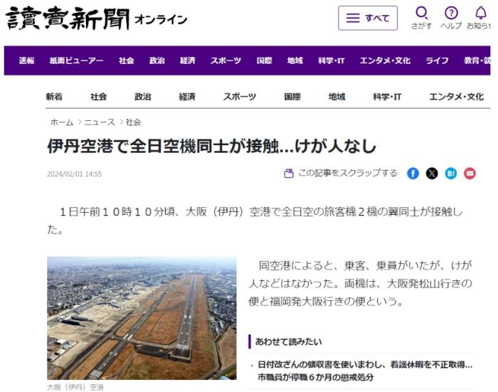 據(jù)介紹,兩架客機(jī)均屬于全日空航空公司,分別是大阪飛往松山以及福岡飛往大阪的航班。