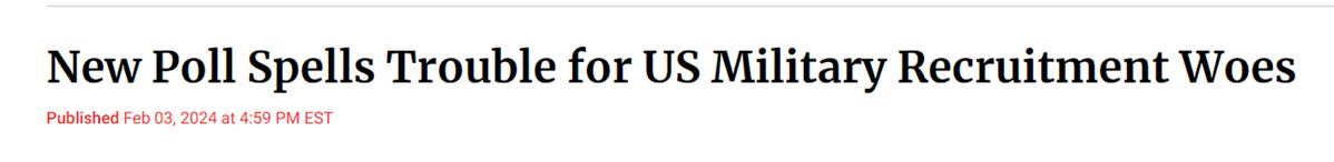 民調(diào)的出爐恰逢美軍連續(xù)幾年遭遇征兵危機(jī)。