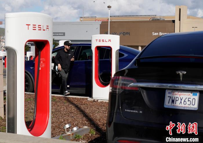 當(dāng)?shù)貢r間2月2日,車主在位于美國加州圣布魯諾一處停車場給特斯拉汽車充電?!≈行律缬浾?劉關(guān)關(guān) 攝