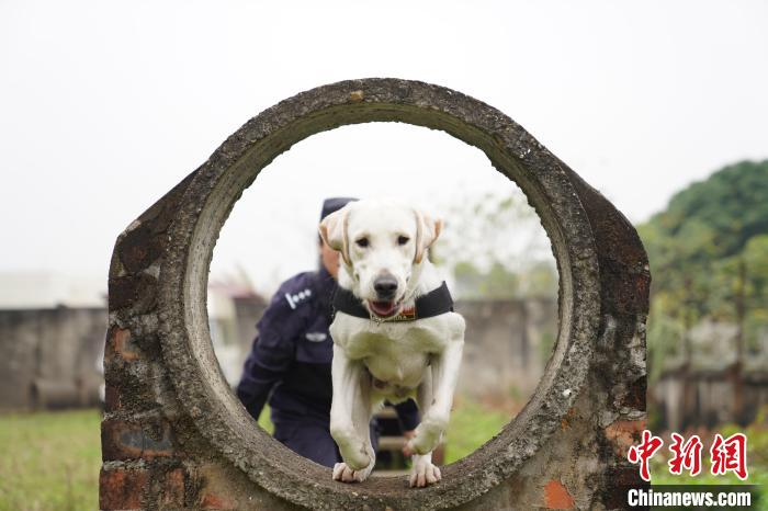 中新網(wǎng)南寧2月5日電 題:“見習(xí)”警犬“斯諾”的首個(gè)春運(yùn):抵御美食誘惑方“過關(guān)”