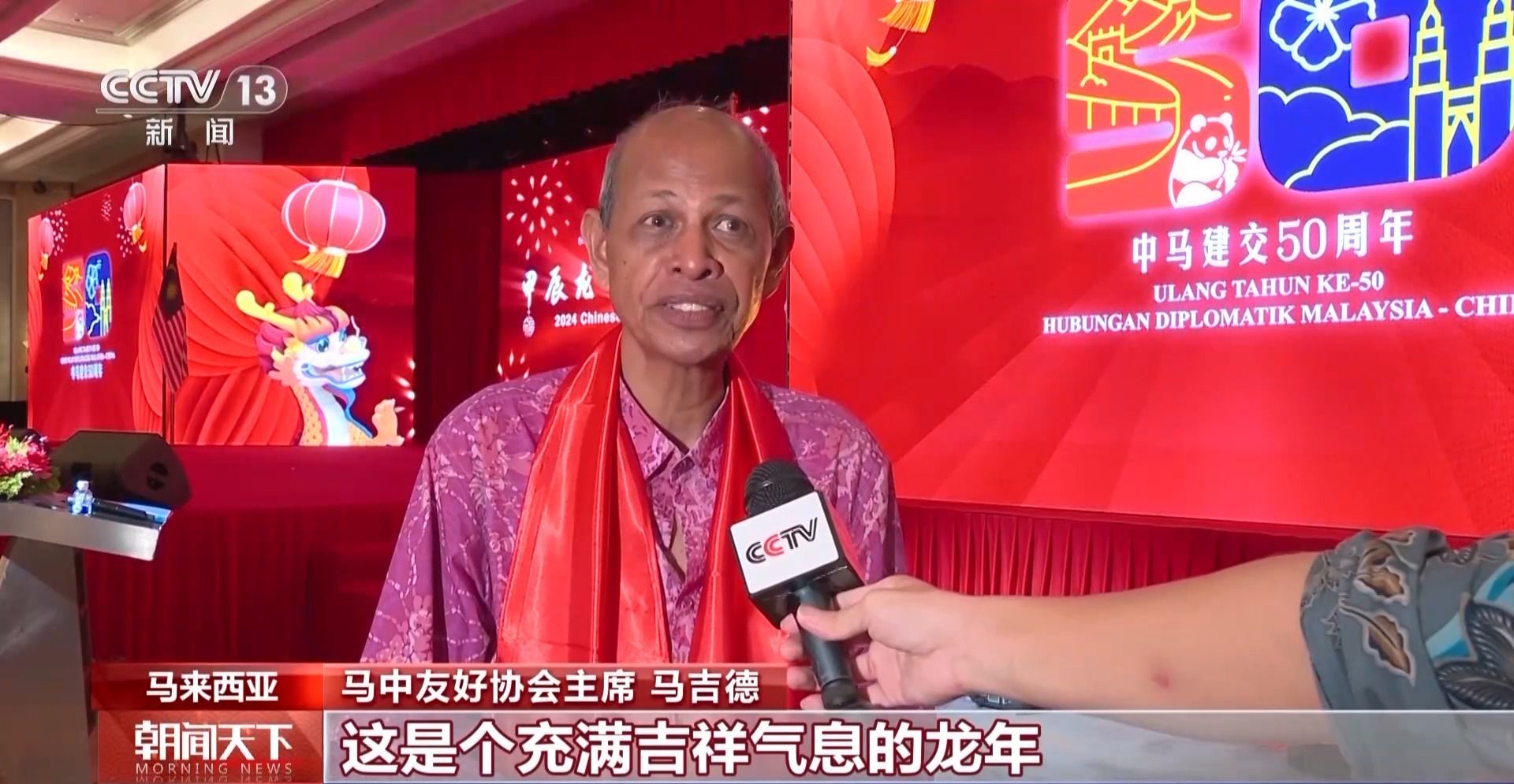 馬中友好協(xié)會主席 馬吉德:這是個充滿吉祥氣息的龍年,我知道龍在中國文化中是一個非常重要,富有傳奇色彩的象征,我們預祝龍年中馬兩國人民建立起更加穩(wěn)定、繁榮和堅固的友誼。(央視新聞客戶端)