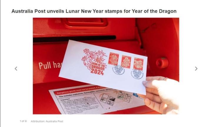 圖片澳大利亞郵政近日推出了龍年特別版中國(guó)春節(jié)郵票。圖為澳大利亞第九新聞網(wǎng)站截圖