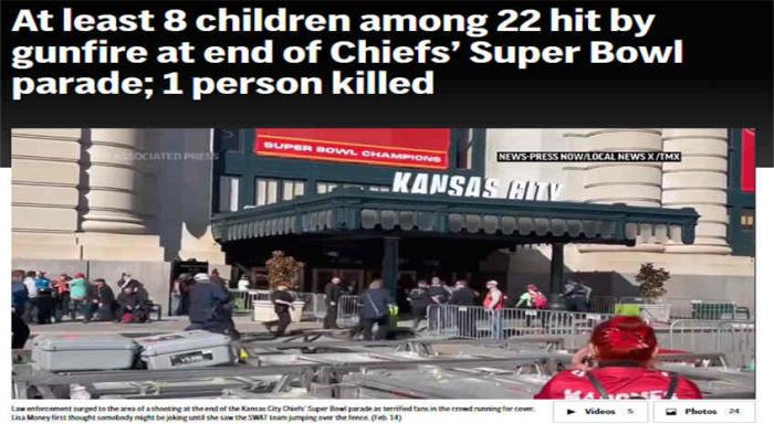 中新網(wǎng)2月15日電 綜合美聯(lián)社、美國廣播公司(ABC)報(bào)道,當(dāng)?shù)貢r(shí)間14日,美國密蘇里州堪薩斯城警方表示,該市當(dāng)日舉行美國職業(yè)橄欖球大聯(lián)盟“超級(jí)碗”勝利游行時(shí)發(fā)生槍擊事件,導(dǎo)致1人死亡,至少21人受傷,其中包括多名兒童。