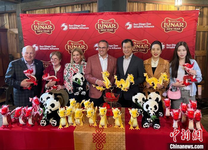 當(dāng)天上午,印著祥龍圖案的紅燈籠、結(jié)滿果實(shí)的金桔樹和鮮花盛放的桃樹將圣地亞哥野生動物園裝點(diǎn)一新。中國駐洛杉磯總領(lǐng)事郭少春及夫人王薇、美國圣地亞哥動物園野生動植物聯(lián)盟總裁兼首席執(zhí)行官潘禮邦(Paul Baribault)與首席市場官穆德威(David Miller)等中美各界人士齊聚一堂,同當(dāng)?shù)馗髯逡崦癖姽蚕泶汗?jié)的喜悅。