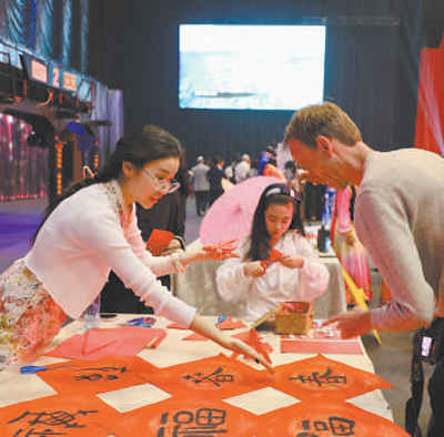 “龍”“福”“春”……在書(shū)法剪紙展臺(tái)上,一幅幅書(shū)法作品傳遞著節(jié)慶的氛圍。當(dāng)?shù)鼐用窭獱柲闷鹨粡垺案!弊郑蚬ぷ魅藛T詢問(wèn)寓意。拉莫爾就職的企業(yè)與中國(guó)有頻繁的業(yè)務(wù)往來(lái),他曾兩次到訪中國(guó)。他說(shuō):“中國(guó)文化博大精深,中國(guó)人有著強(qiáng)烈的文化認(rèn)同感。希望多多舉辦這樣的活動(dòng),讓更多人了解中國(guó)文化。”