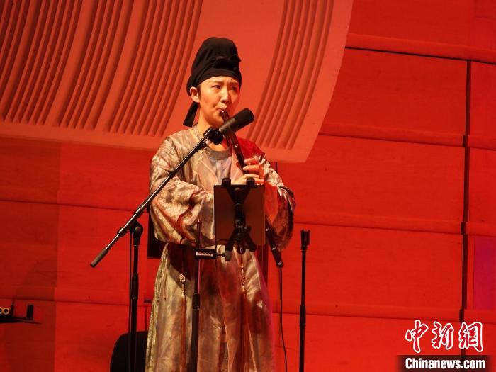 綾羅交織七千里,唯寄一夢(mèng)寓長(zhǎng)安。音樂(lè)會(huì)巧妙地為每一位樂(lè)手都設(shè)計(jì)了富有生命感的人物小傳——他們是敦厚善良的蒙古牧人,是耿直忠誠(chéng)的大唐武將,是堅(jiān)定隱忍的宮廷樂(lè)伎,還有潑辣開(kāi)朗的康國(guó)公主......《絲路回響》《滿(mǎn)庭芳》《胡璇女》《菩薩蠻》《風(fēng)竹》《若相逢》《安詳》等15首精心編排的曲目通過(guò)笛子、琵琶、古箏、馬頭琴、二胡、鼓、手鼓、貝斯、鍵盤(pán)等樂(lè)器表演的相互碰撞,時(shí)而娓娓道來(lái),時(shí)而大氣磅礴、時(shí)而峰回路轉(zhuǎn),時(shí)而慷慨激昂,讓觀眾沉浸其中。特別是中國(guó)最古老的樂(lè)器之一塤的出場(chǎng),帶領(lǐng)觀眾穿越時(shí)空,盡情感受中華文化的源遠(yuǎn)流長(zhǎng)。同時(shí)音樂(lè)會(huì)精心打造的表演服裝和妝容設(shè)計(jì)既華美又夢(mèng)幻,讓觀眾身臨其境,感受中國(guó)音樂(lè)的獨(dú)特魅力,感受多元文化交流互鑒的激情洋溢。整場(chǎng)音樂(lè)會(huì)觀眾沉醉其中,掌聲一浪高過(guò)一浪。最后返場(chǎng)曲目新編澳大利亞傳統(tǒng)樂(lè)曲《剪羊毛》詼諧幽默,更是拉近了與現(xiàn)場(chǎng)觀眾的距離。