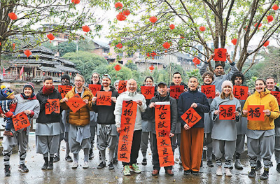 春節(jié)期間,廣西壯族自治區(qū)桂林市靈川縣九屋鎮(zhèn)西嶺山莊迎來(lái)一批外國(guó)客人,他們一起寫福字、磨豆腐、舂糍粑、釀圓子……沉浸式體驗(yàn)中國(guó)傳統(tǒng)民俗,現(xiàn)場(chǎng)歡聲笑語(yǔ)不斷。