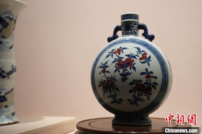 2月27日,正在“御瓷歸來(lái)”展覽上展出的“青花釉里紅折枝石榴紋抱月瓶”?!⑺紓?攝