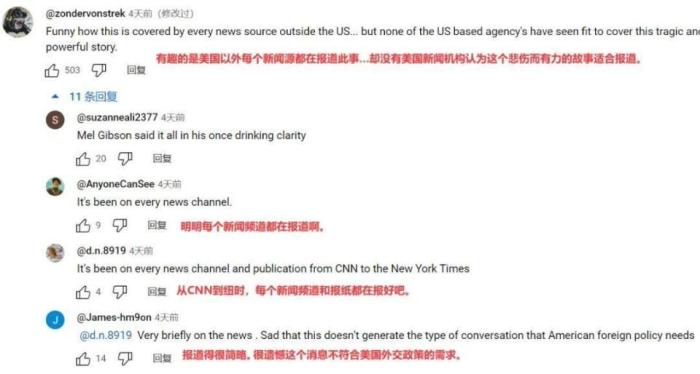 英國天空新聞電視臺報道下方的評論區(qū),高贊評論誤以為當(dāng)時沒有美國媒體報道此事