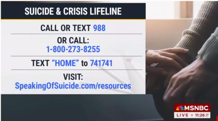 前面還挺正常,就是對事件的報道,畫面也在播報員和現(xiàn)場鏡頭之前互相切(順帶一提MSNBC的說辭也是“抗議哈以戰(zhàn)爭”),然后話鋒突然一轉(zhuǎn):“如果你發(fā)現(xiàn)有人有心理健康風(fēng)險,請及時撥打預(yù)防自殺熱線XXXXX……”