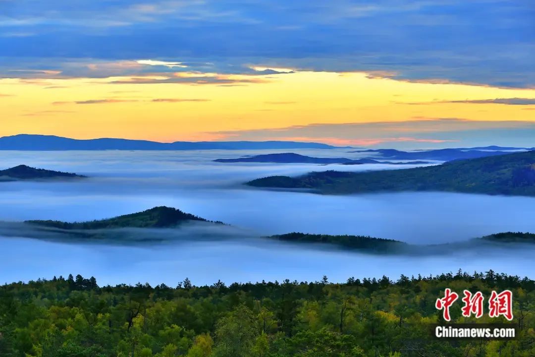 眺望內(nèi)蒙古大興安嶺林區(qū),云霧升騰,仿若仙境。 曹偉 攝