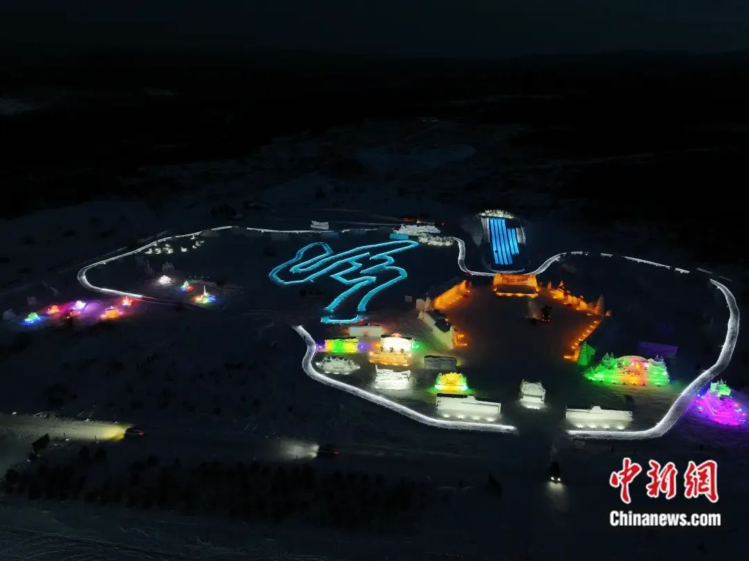 航拍燈火通明的冷極村。 內(nèi)蒙古森工集團(tuán)供圖