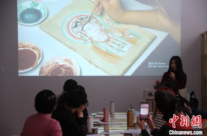 2023年2月,在敦煌研究院莫高學(xué)堂,研學(xué)導(dǎo)師給學(xué)員講授敦煌壁畫(huà)臨摹技法。 張曉亮 攝