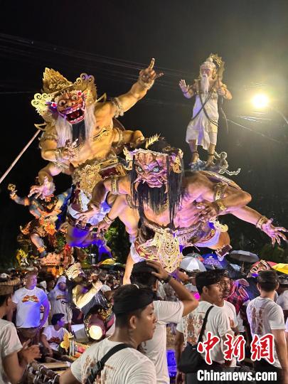3月10日晚,巴厘島舉行盛大的“Ogoh-Ogoh”游行。隨著夜幕降臨,整個(gè)島嶼變得喧鬧起來,每個(gè)村落的男女老少都匯聚在一起,參與到這場(chǎng)充滿儀式感的游行中。在巴厘島市中心的一處廣場(chǎng),抬“Ogoh-Ogoh”怪獸雕像的人們,伴隨著打擊樂和呼喊聲,將怪獸雕像晃動(dòng)起伏,模仿怪獸行走的姿態(tài),讓這些由竹子、紙張和膠合板制成的雕像看起來活靈活現(xiàn)。