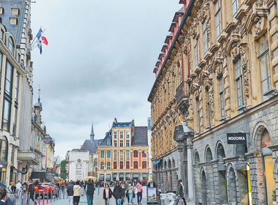 游客在法國(guó)里爾老城漫步。