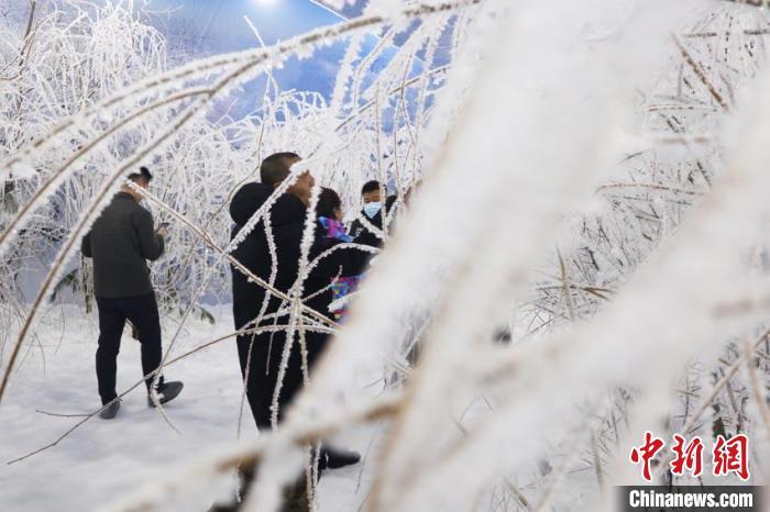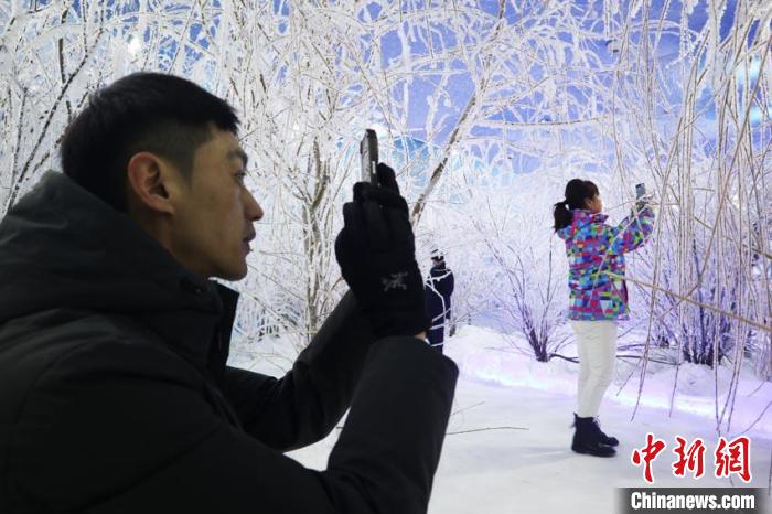 游客在室內(nèi)欣賞霧凇?!∩n雁 攝