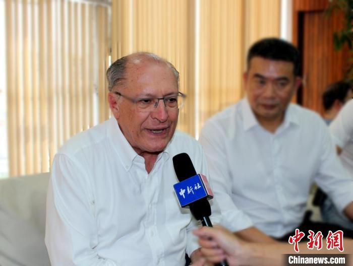 當(dāng)?shù)貢r間3月16日,巴西圣保羅,巴西副總統(tǒng)兼發(fā)展、工業(yè)與貿(mào)易部長阿爾克明接受中新社記者專訪?!×趾?攝