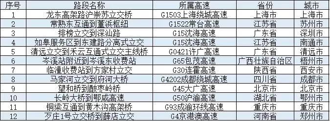 清明節(jié)期間,全國高速公路預(yù)計(jì)易發(fā)生擁堵緩行的路段,如表1所示。