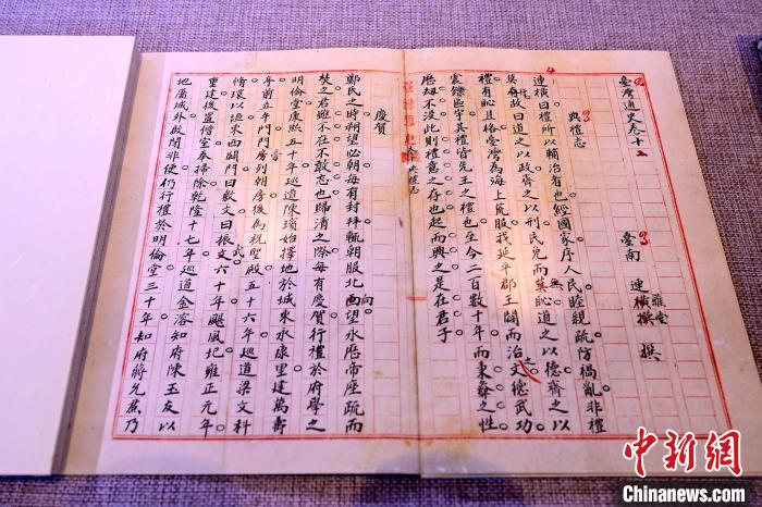 圖為連橫《臺灣通史》手稿殘卷影印本?!≈行律缬浾?張金川 攝