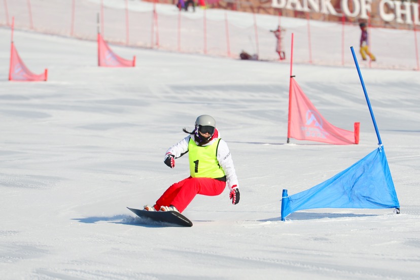 當(dāng)天上午9點20分,大眾滑雪組單板滑雪大回轉(zhuǎn)比賽正式開始。賽場上,選手們速度與技巧的完美結(jié)合,博得了在場觀眾陣陣喝彩。隨后進(jìn)行的高山滑雪大回轉(zhuǎn)比賽也同樣精彩。選手迅速沖出起點,雙手緊握雪杖用力后撐,加速向前滑行,靈巧地在賽道上轉(zhuǎn)變滑行方向,從一個個旗門中輕巧地回轉(zhuǎn)而過,每一次急停和回轉(zhuǎn),都濺起一簇簇潔白的雪花。