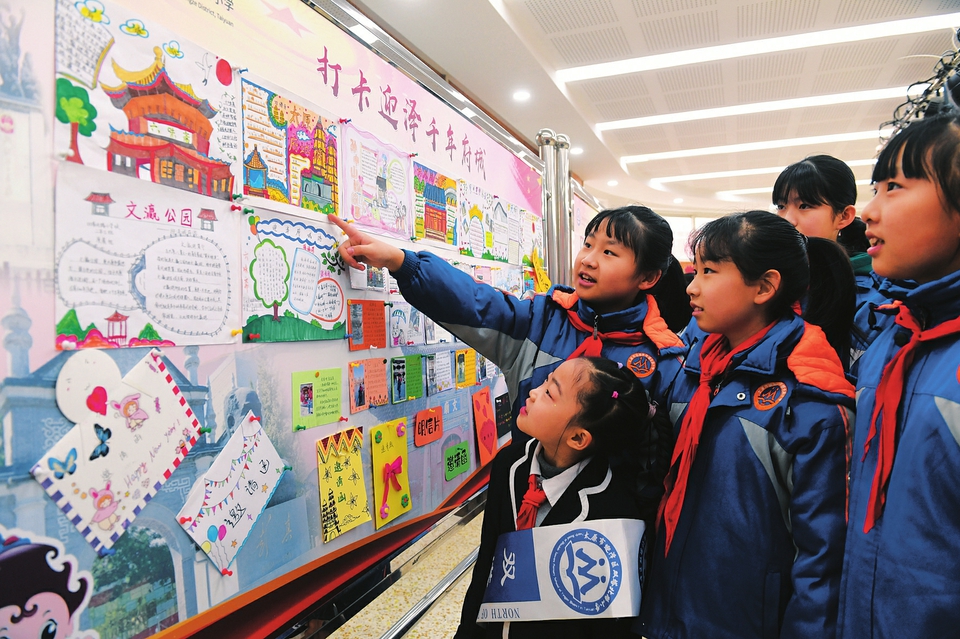 1月10日,省城雙塔北路小學(xué)二年級師生利用迎澤區(qū)的文旅資源,在學(xué)期末組織開展“府城游”綜合素養(yǎng)大比拼活動,讓孩子們領(lǐng)略精彩自信的“人文迎澤”,傳承紅色基因,感受歷史文化。(記者王瑞瑞攝)