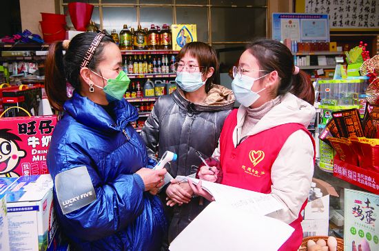 1月11日,在金華婺城區(qū)城北街道站前社區(qū),放寒假回金的大學(xué)生傅雨曦,穿上紅馬甲協(xié)助社區(qū)工作人員到沿街店鋪核查防疫措施落實(shí)情況,打電話了解外地返金人員行程及疫苗接種情況。傅雨曦說,她是共青團(tuán)員,和同學(xué)報名參加婺城大學(xué)生寒假疫情防控志愿服務(wù),在社區(qū)、疫苗接種點(diǎn)等地做公益服務(wù)。(時寬兵)