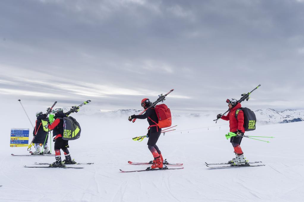 資料圖:2019年4月5日,中國國家高山滑雪集訓(xùn)隊在奧地利蒂羅爾州一處雪場內(nèi)前往訓(xùn)練比賽區(qū)域。新華社記者 郭晨 攝