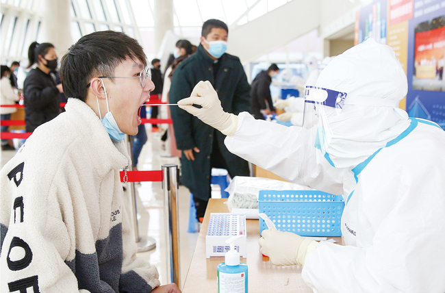 連日來(lái),金華東陽(yáng)醫(yī)護(hù)人員陸續(xù)來(lái)到一些學(xué)校給學(xué)生做核酸檢測(cè),讓他們不出校門就拿到核酸檢測(cè)報(bào)告。大學(xué)生寒假返鄉(xiāng)高峰期來(lái)臨,面對(duì)復(fù)雜的疫情防控形勢(shì),不少地方要求必須持核酸檢測(cè)陰性報(bào)告才能返鄉(xiāng)。(李建林)
