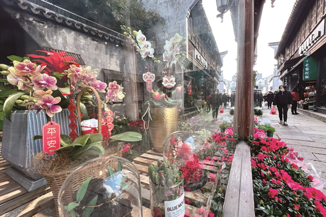 1月18日,在嘉興市區(qū)月河花鳥市場,新春花卉五彩繽紛、琳瑯滿目,市民們漫步暖陽中,購買鮮花裝扮新春。(王振宇、王燁旻)