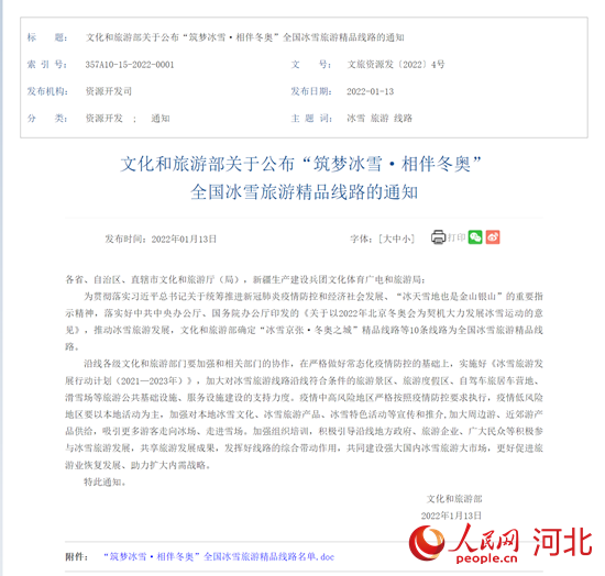 人民網(wǎng)石家莊1月19日電 (商帆)近日,文化和旅游部發(fā)布了“筑夢(mèng)冰雪·相伴冬奧”全國(guó)冰雪旅游精品線路,10條線路涵蓋北京、河北、黑龍江、吉林、遼寧、新疆、內(nèi)蒙古7個(gè)北方冰雪旅游大?。▍^(qū)、市),以及甘肅、四川、湖北、重慶等近幾年冰雪旅游加快發(fā)展的地區(qū)。河北省“冰雪京張·冬奧之城”精品線路和“長(zhǎng)城內(nèi)外·冰雪絲帶”精品線路入選。