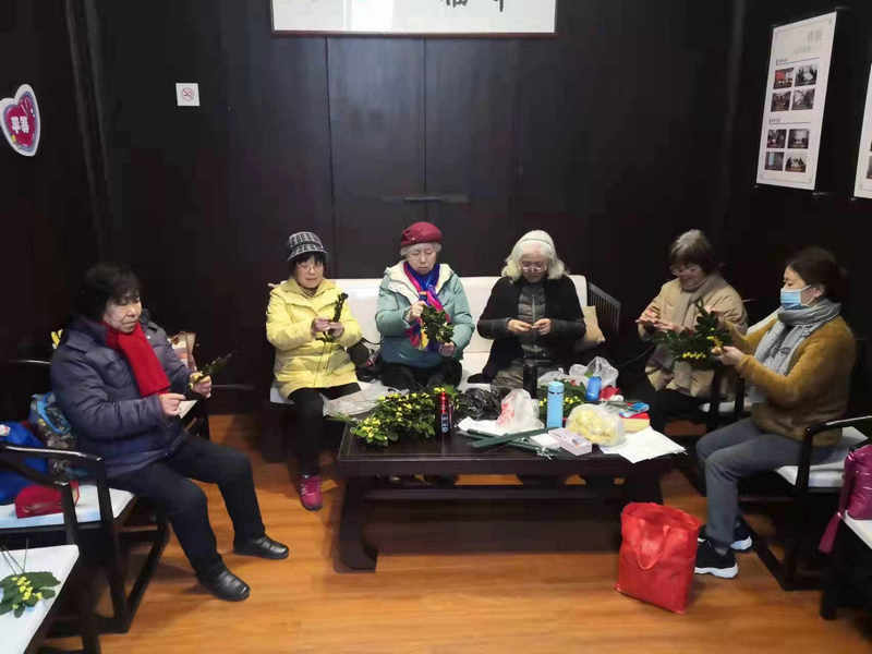 編織隊(duì)成員們聚在一起制作絨線桂花。受訪者供圖