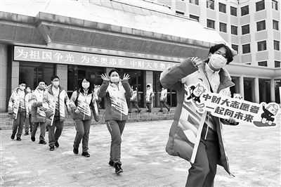 北京大學舉辦了隆重的出征儀式,為志愿者授旗壯行,奧運冠軍代表丁寧現(xiàn)場講述奧運夢想與奮斗故事。出征前一周,學校還開展了“冰新一代·一起向未來”冬奧志愿者成長培訓營,為志愿者講述奧運精神,傳授疫情防控和志愿者心理調節(jié)等相關知識,提供新動力。作為首都體育館場館群的主責高校,中國人民大學全體志愿者莊嚴宣誓“奉獻冰雪盛會,綻放青春光彩,我們準備好了!”北京交通大學校領導為首批出發(fā)的79名師生志愿者送行,囑托志愿者做好個人防護,并向志愿者送上寄托學校關心關愛的中國結和多肉植物。北京建筑大學志愿者在出征前自發(fā)組織主題手繪,并捐贈校史館保存。