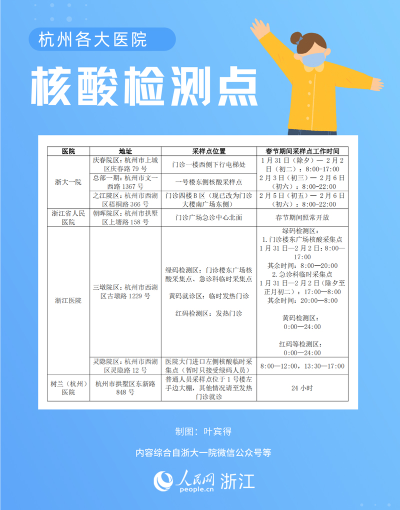 1月26日,杭州出現(xiàn)新一輪疫情,需要做核酸檢測(cè)的人數(shù)量陡增。做核酸檢測(cè)時(shí),哪些事項(xiàng)要注意?春節(jié)期間,杭州各大醫(yī)院核酸檢測(cè)時(shí)間地點(diǎn)是否有變?請(qǐng)收好這份小貼士。