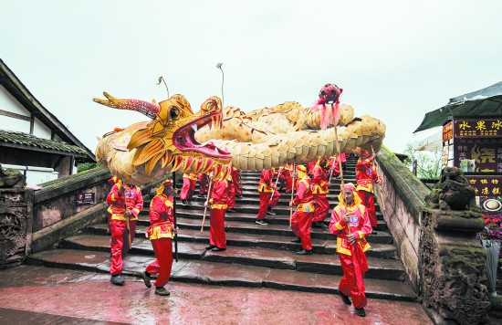 豐富多彩的傳統(tǒng)民俗活動(dòng)同樣也將在邛崍平樂古鎮(zhèn)上演。作為國家非物質(zhì)文化遺產(chǎn)瓷胎竹編的故鄉(xiāng),平樂古鎮(zhèn)的“竹龍迎春”活動(dòng)是其一大特色。99米長(zhǎng)、擁有5000多片鱗片的“亞洲第一竹龍”舞動(dòng)時(shí)張合如金波流動(dòng),靈動(dòng)非常。春節(jié)期間,舞竹龍的隊(duì)伍將從平樂古鎮(zhèn)平沙落雁音樂廣場(chǎng)出發(fā),穿過富有川西特色的老街,巡游整座古鎮(zhèn)。
