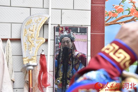 涉縣賽戲代表性傳承人湯香平給演員化妝。 李獻海攝