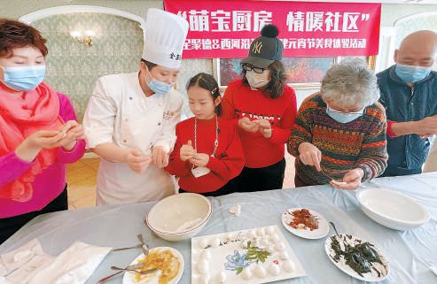 昨天下午,十幾名來自前門西河沿社區(qū)的退休職工和兒童來到全聚德和平門店,興致勃勃地在面點師傅的指導下包湯圓。 本報記者 閻彤攝