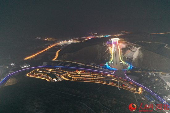 張家口賽區(qū)國家跳臺滑雪中心夜景。 馮波攝