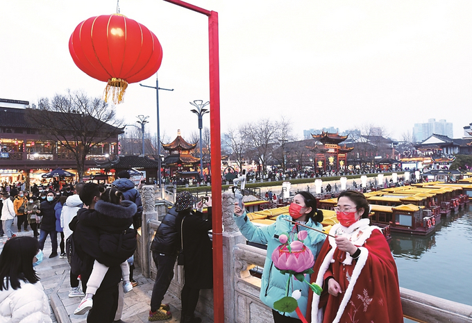 元宵節(jié)游客掃描“雙碼”進南京夫子廟景區(qū)