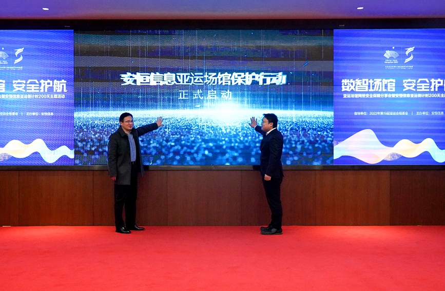 人民網(wǎng)杭州2月23日電 (張麗瑋)今天,杭州亞組委廣播電視和信息技術(shù)部副部長趙欣浩與安恒信息高級(jí)副總裁袁明坤共同啟動(dòng)了“亞運(yùn)場館網(wǎng)絡(luò)安全保護(hù)行動(dòng)”。