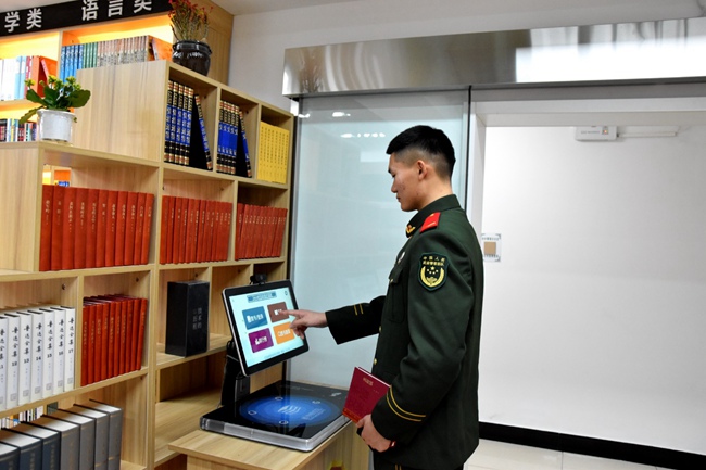 該支隊強(qiáng)軍書屋設(shè)有傳統(tǒng)閱讀區(qū),讀書交流區(qū),管理服務(wù)區(qū)和電子閱讀區(qū)四大區(qū)域,將情景模擬、視頻教學(xué)、電子閱讀等融為一體,創(chuàng)造了互聯(lián)網(wǎng)式閱讀模式。